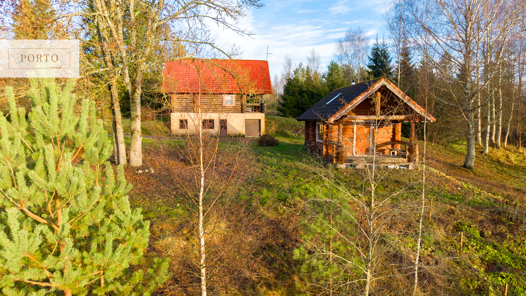 Kinnistul paikneb kolm palkhoonet – kolmekorruseline peamaja, saunamaja ja ruumikas väliköök kahe eraldi toaga. Kõik hooned on ehitatud palgist ja kaetud kivikatusega (väliköögi katus on tehtud tõrvapapist), pakkudes ehtsat looduslähedast atmosfääri. Rajatised vajavad küll uuenduskuuri, kuid pakuvad suurepärast võimalust luua siia omanäoline puhkekeskus või pere idülliline maakodu.