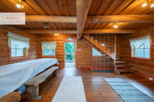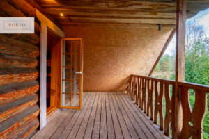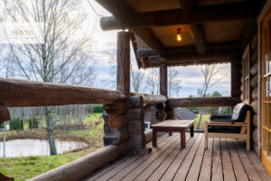 Saunamaja (u 60 m²): traditsiooniline saun, puhkeruum, rõdu ja II korruse lisavõimalused.