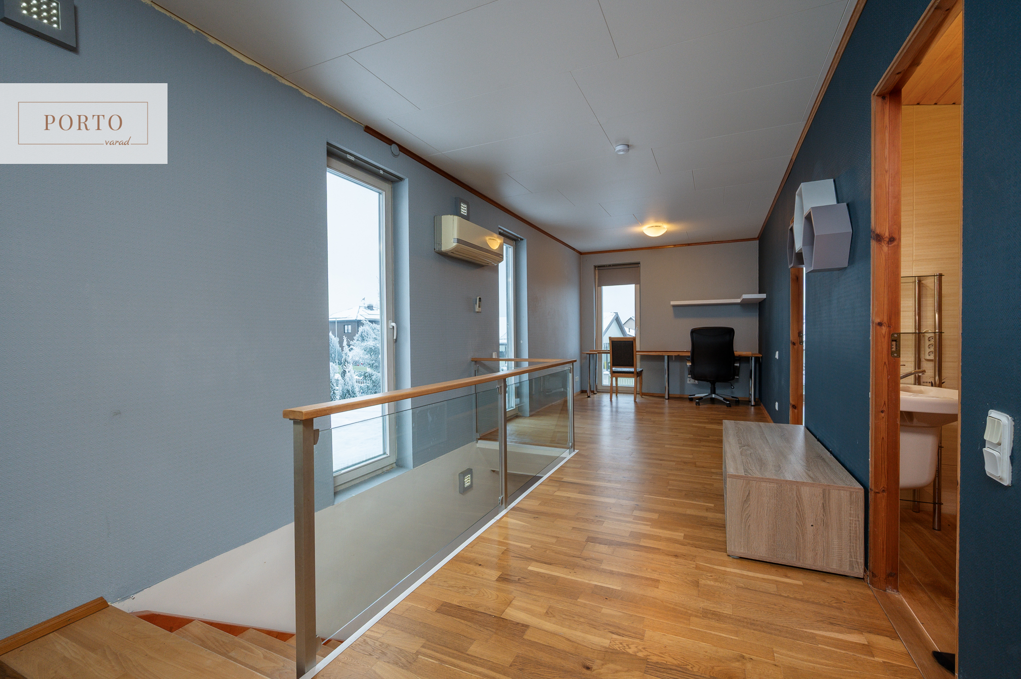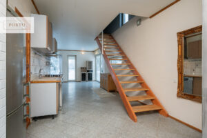 Maja esimesel korrusel asub avar avatud köök-elutuba, WC ning vannituba koos saunaga. Elutoast pääseb otse aiaga piiratud hoovi. Teisel korrusel on kaks magamistuba, vannituba ning avatud ala, mida saab kasutada kodukontorina või soovi korral muuta lisatoaks. Avatud alalt on pääs terrassile.